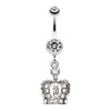 Clear Dazzling Royal Crown Dangle Belly Ring
