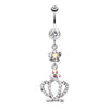 Clear Flower Crown Sparkle Dangle Belly Ring