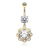 Clear Golden Dazzling Flower Dangle Belly Ring