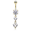 Clear Golden Elegant Double Hearts Dangle Belly Ring
