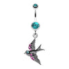 Teal Jeweled Flying Swallow Dangle Belly Button Ring